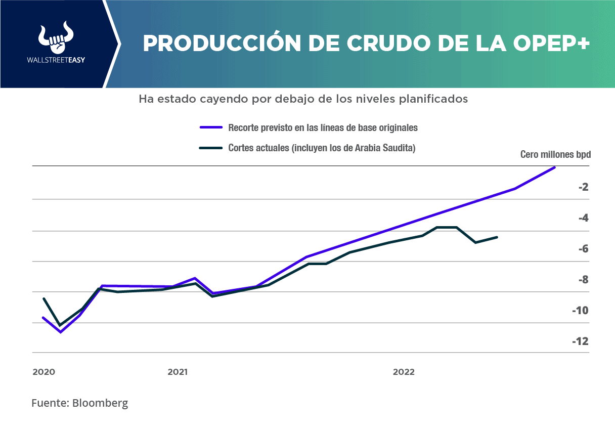 - Dado que Rusia se enfrenta a una serie de sanciones a partir de 2023 y, por lo tanto, es susceptible de sufrir caídas de la producción, Arabia Saudí pretende mantener a la OPEP+ como fuerza de coordinación del mercado, prefiriendo evitar las crisis repentinas, ya que ese país ha llegado a disfrutar de un prolongado periodo de ganancias.