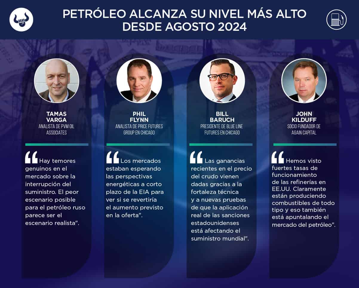 - Se trata de la primera vez que el petróleo cotiza tan alto desde el 26 de agosto del año pasado, y ni siquiera un posible alto el fuego en Gaza podría hacer retroceder los precios por debajo de dicho umbral.