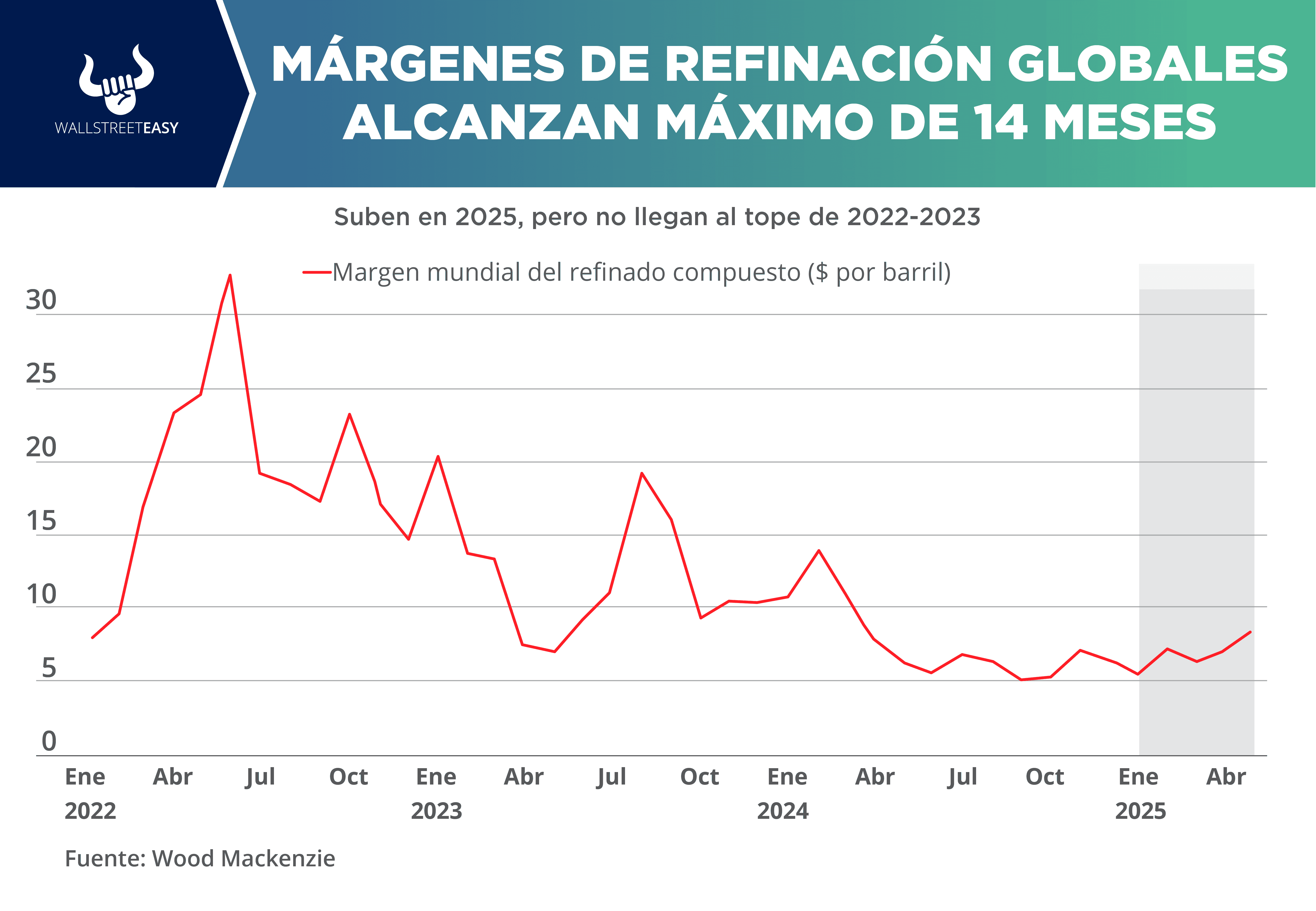 El precio del barril ha aumentado +8,8% en los últimos 30 días.