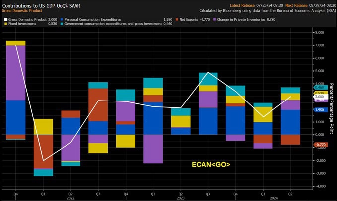 La actualización del producto interno bruto de los Estados Unidos salió mejor a lo esperado, saliendo en 3,0% cuando se esperaba 2,8%, siendo mejor que la estimación pasada que era 2,8%, lo cual sorprendió a los mercados de manera positiva dado que inclusive el reporte anterior había sido mucho mejor a lo esperado y el hecho de que en esta revisión resulte al alza, implica que la economía estaba en una situación mucho más sólida de lo que se pensaba originalmente.