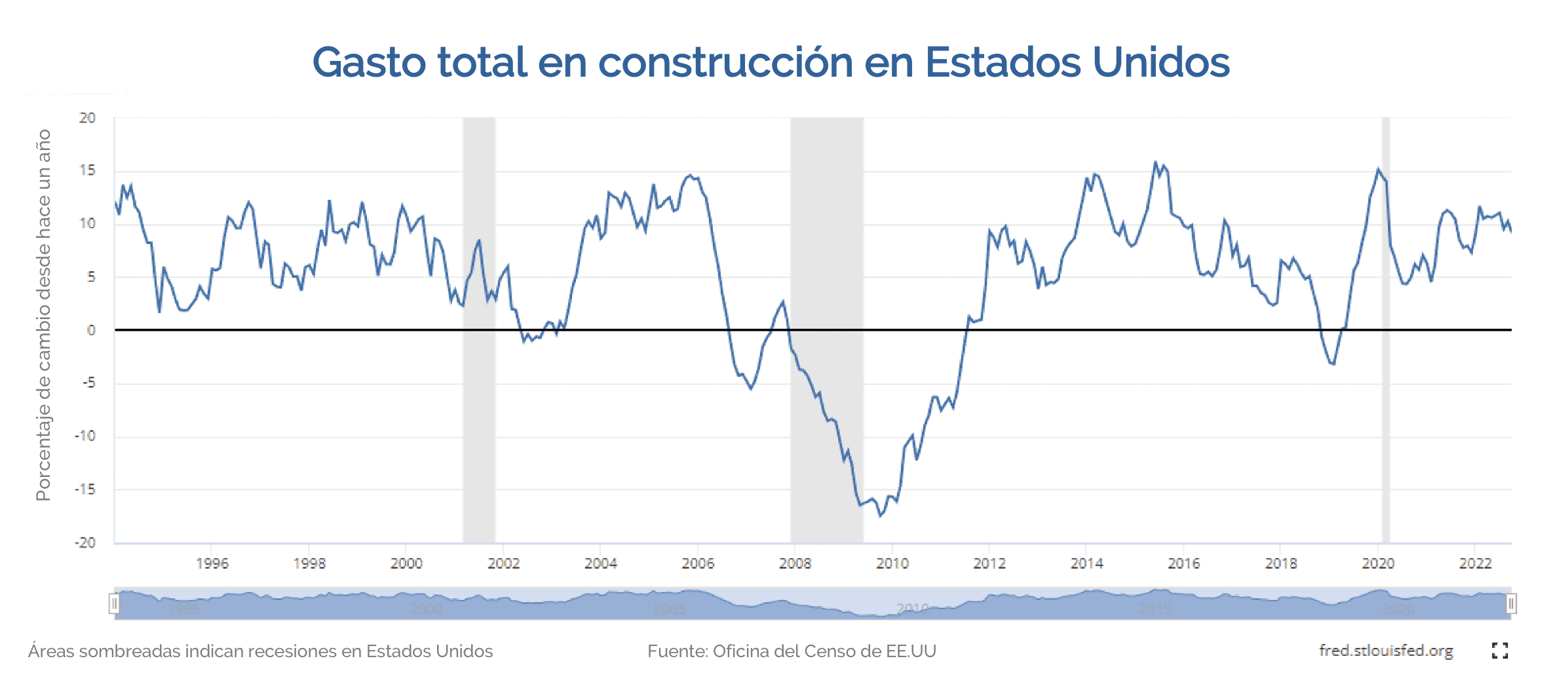 En el sector construcción, también se deberá tener en cuenta el gasto total en construcción en EEUU, que durante 2022 se mantuvo a niveles promedio, pero al final de año mostró una ligera caída.
