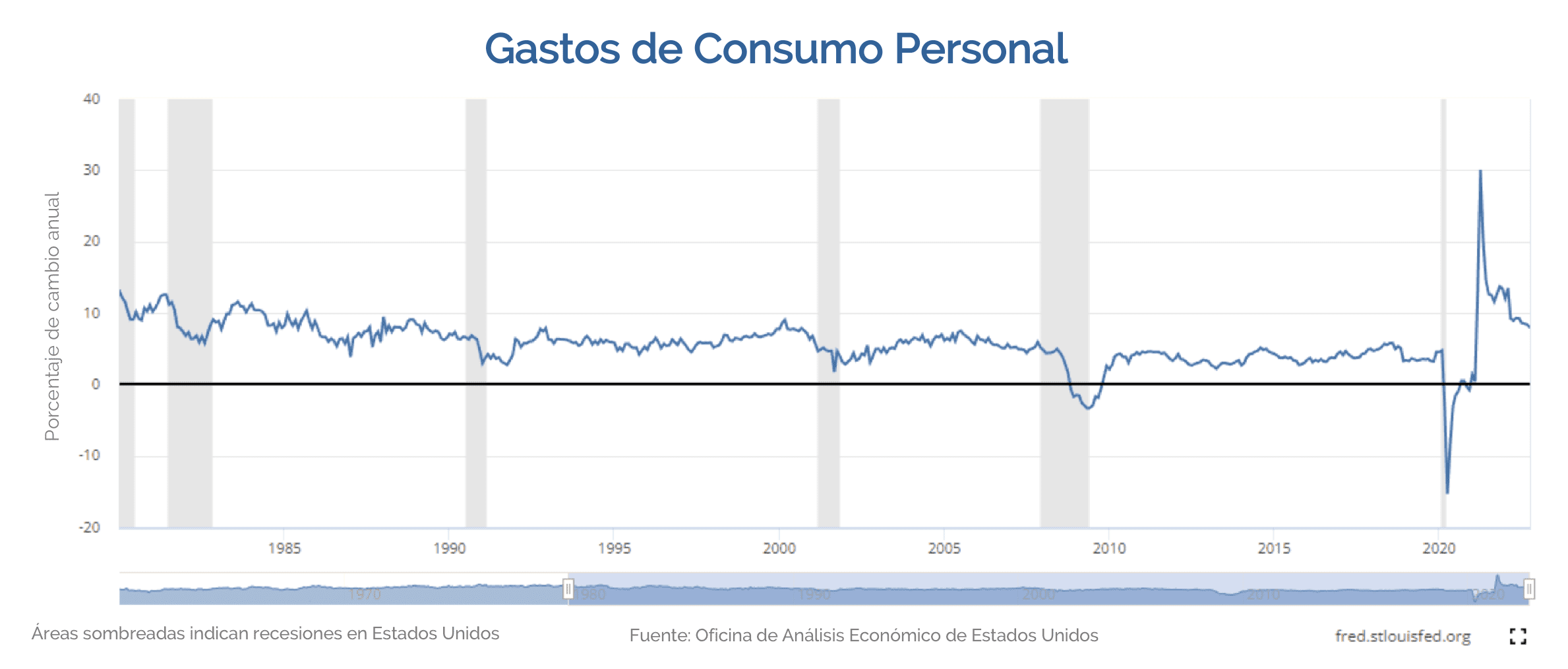 Uno de los puntos fundamentales que todo inversor deberá observar de cerca es el consumo en EEUU. El 70% de la economía norteamericana depende del consumo, que en los últimos meses ha caído tras el fin de los incentivos del Estado por el COVID-19. Sin embargo, se mantiene por encima de su tendencia histórica, así que por ahora, la data no muestra ninguna señal negativa.