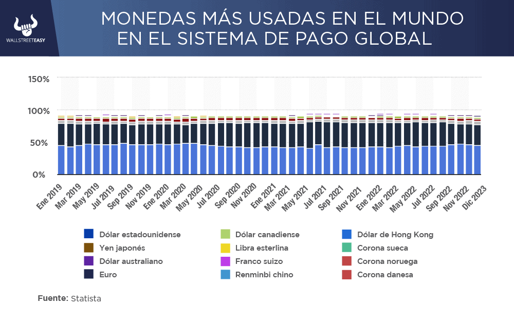 ¿ALGO MÁS? En teoría, una mayor competencia de otras monedas podría afectar la demanda del dólar estadounidense, lo que podría causar que su valor disminuya en los mercados de divisas y revertir algunas de las ventajas que su dominio ha otorgado a las instituciones e inversores estadounidenses. ¿OTRO DATO RELEVANTE? Es poco probable que el papel actual del dólar estadounidense en la economía global se vea seriamente cuestionado, al menos en el corto plazo, y Morgan Stanley enumera cuatro razones claves por las que el dólar seguirá siendo la principal moneda del mundo, al menos por ahora. ¿QUÉ MÁS PASÓ? El dólar estadounidense sigue siendo el medio de intercambio dominante en el mundo. En marzo, la Sociedad para las Telecomunicaciones Financieras Interbancarias Mundiales (SWIFT) informó que el dólar era la moneda más utilizada en su sistema de pago global, representando el 41,7%, seguido de cerca por el euro. En comparación, el renminbi chino se utilizó en el 2,4 % de los pagos SWIFT, a pesar de que China representa un porcentaje relativamente mayor del comercio mundial.