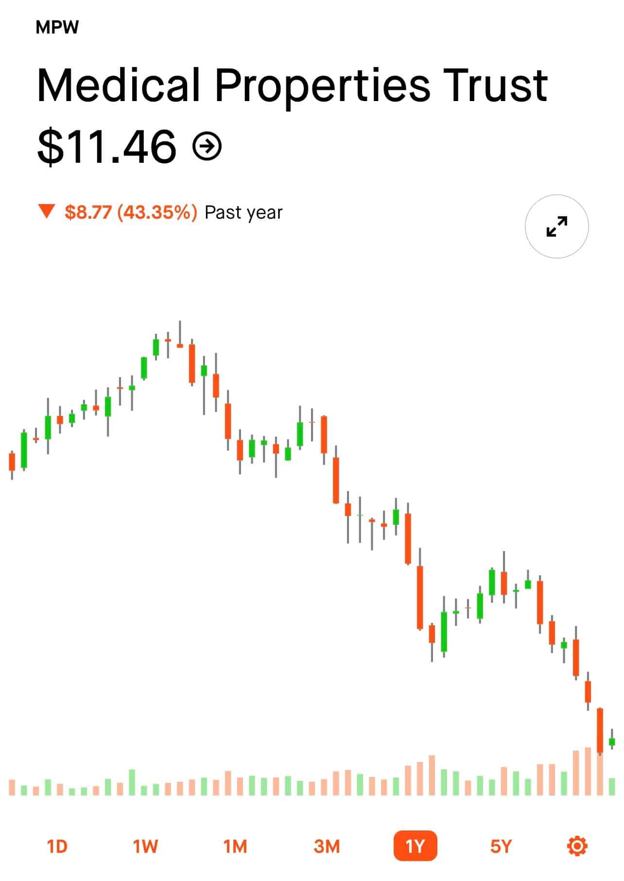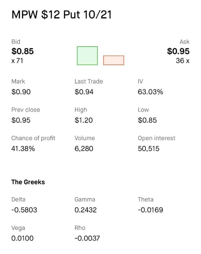 El rendimiento de la acción de Medical Properties Trust ($MPW) en los últimos 12 meses ha sido de -43%, y recientemente salió un rumor de un posible default de su inquilino principal (30% de las ventas), Steward Health Care Systems. Ante esto, la semana pasada se abrieron 40.000 contratos PUTs en un solo día con vencimiento al 21 de octubre 2022.