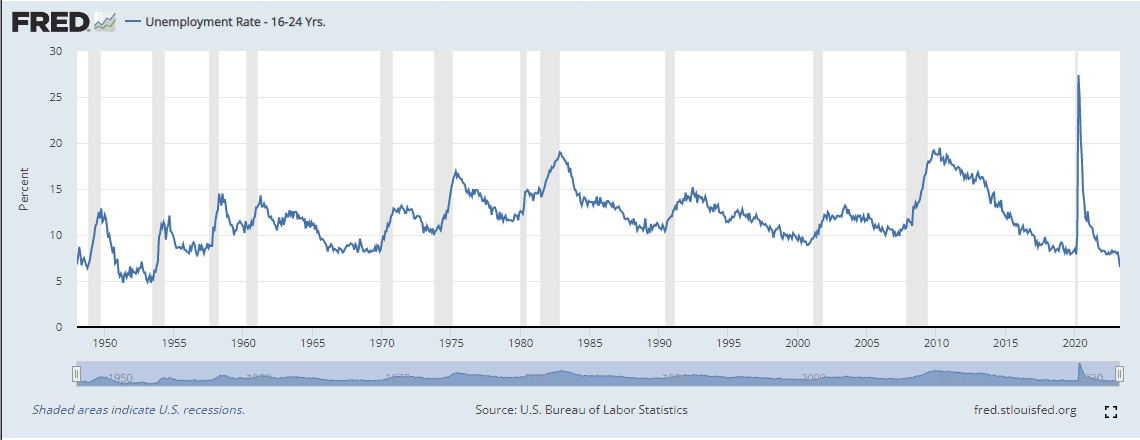 Analizando la data interna del reporte, notamos ciertas situaciones que se están presentando que llaman la atención. Por ejemplo, la tasa de desempleo en algunos grupos -como los adolescentes- que tiende a ser mayor, está teniendo una caída importante, lo que demuestra que las empresas están tratando de contratar empleados de colectivos a los que generalmente les resulta más complicado ocuparse. Esto es opuesto a lo que la FED viene prediciendo, un aumento sustancial en el desempleo.