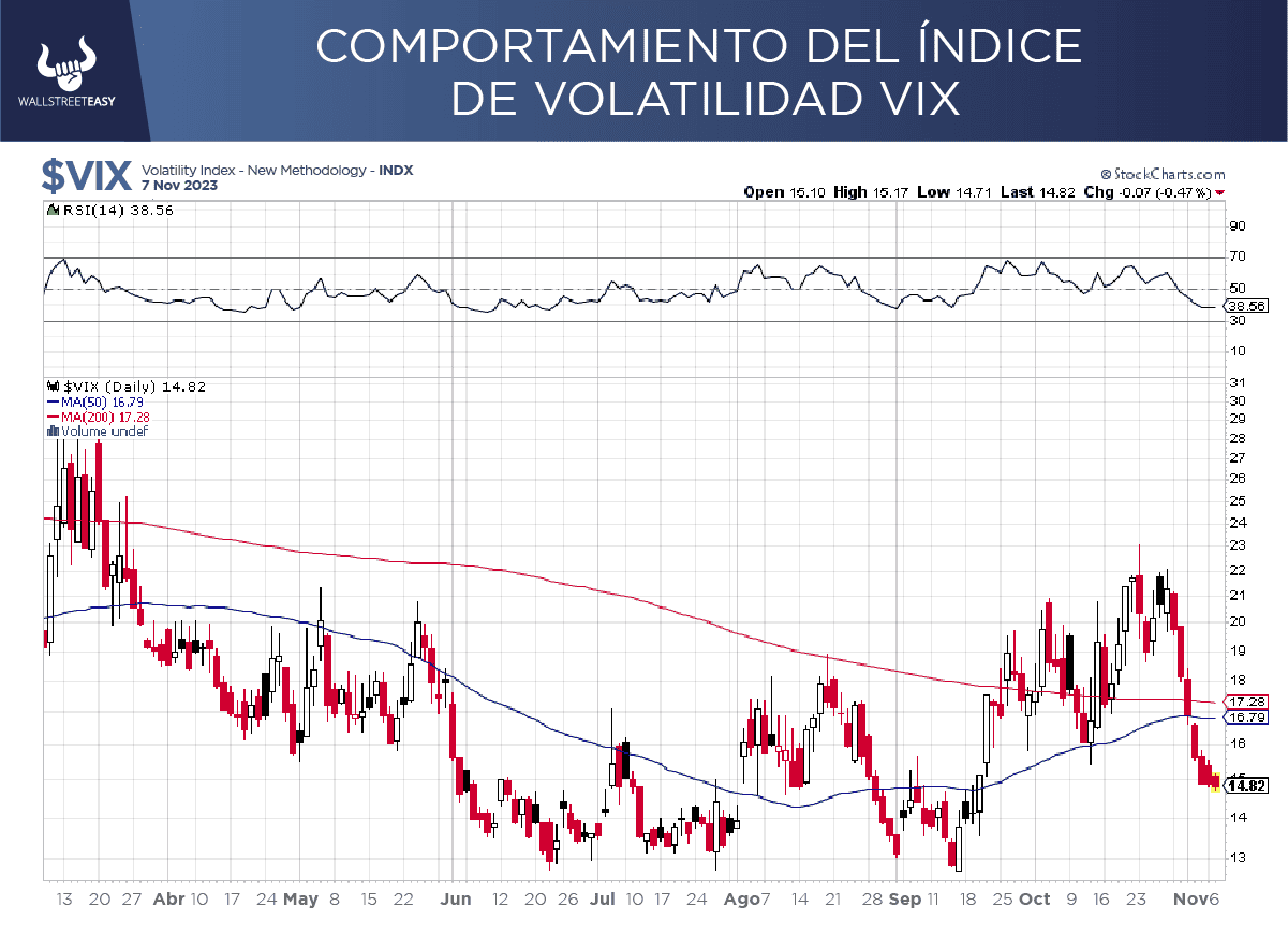 En este tránsito, el VIX está tocando la parte inferior de la tendencia bajista, que arrancó en marzo. Así que hay que estar muy atentos a si la rompe o si por el contrario hay un ligero aumento en la volatilidad.