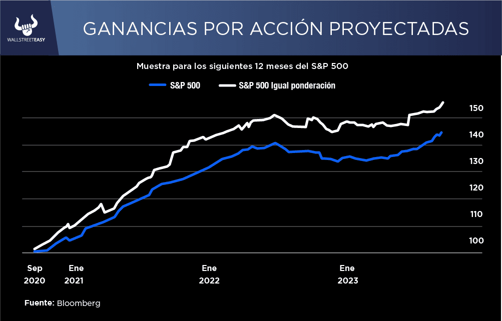 Las previsiones de beneficios están mejorando, aunque la mayoría de los gestores de fondos encuestados por BofA todavía creen que se deteriorarán. El siguiente gráfico muestra la medida de Bloomberg de las expectativas promedio para los próximos 12 meses.