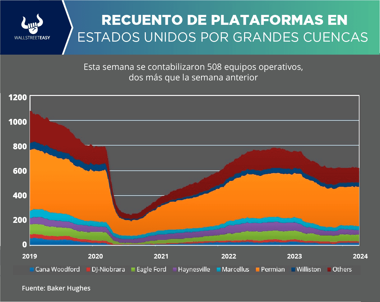 EIA, por sus siglas en inglés) reportó 821,5M de barriles en existencias de crudo, tanto comerciales como estratégicas, lo que representa un aumento de 6,4M de barriles. El Instituto Americano del Petróleo (