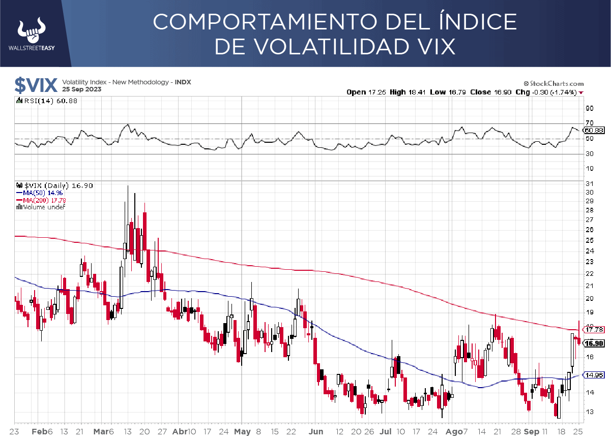 PARA NO PERDER DE VISTA El VIX subió al nivel de 18,5 que manejó en agosto, y cayó del mismo muy rápidamente. Este nivel fue el anterior piso de la bolsa y de allí vimos un umbral importante. Estamos viendo que el VIX nuevamente da señales de no querer subir de ese nivel, pero el mercado todavía no responde en esa misma dirección.