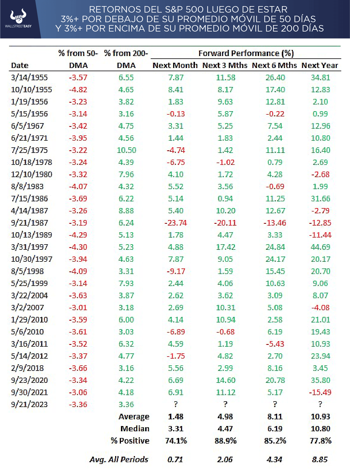 LA NOTICIA El mercado arrancó con avance ayer, pero mostrando mucha debilidad hoy. DAME CONTEXTO El S&P 500 está en lo que se conoce como “dimensión desconocida”, que implica que está lejos del promedio 50 días, pero también lejos del móvil de 200 días. En este caso está por debajo de su promedio móvil de 50 días, pero sigue por encima de su promedio móvil de 200 días. QUE QUÉ Esto es una situación que genera confusión, dado que no tiene ningún techo o pisos cercanos que podamos tomar. La consultora Bespoke opina que cuando se presenta este tipo de situaciones, no significa que el mercado esté bajista, de hecho afirma que realmente ha sido un muy buen momento para comprar.